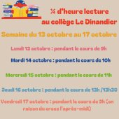 1/4 D’HEURE LECTURE Cette année le collège met en place le 1/4 heure lecture chaque jour de (…)